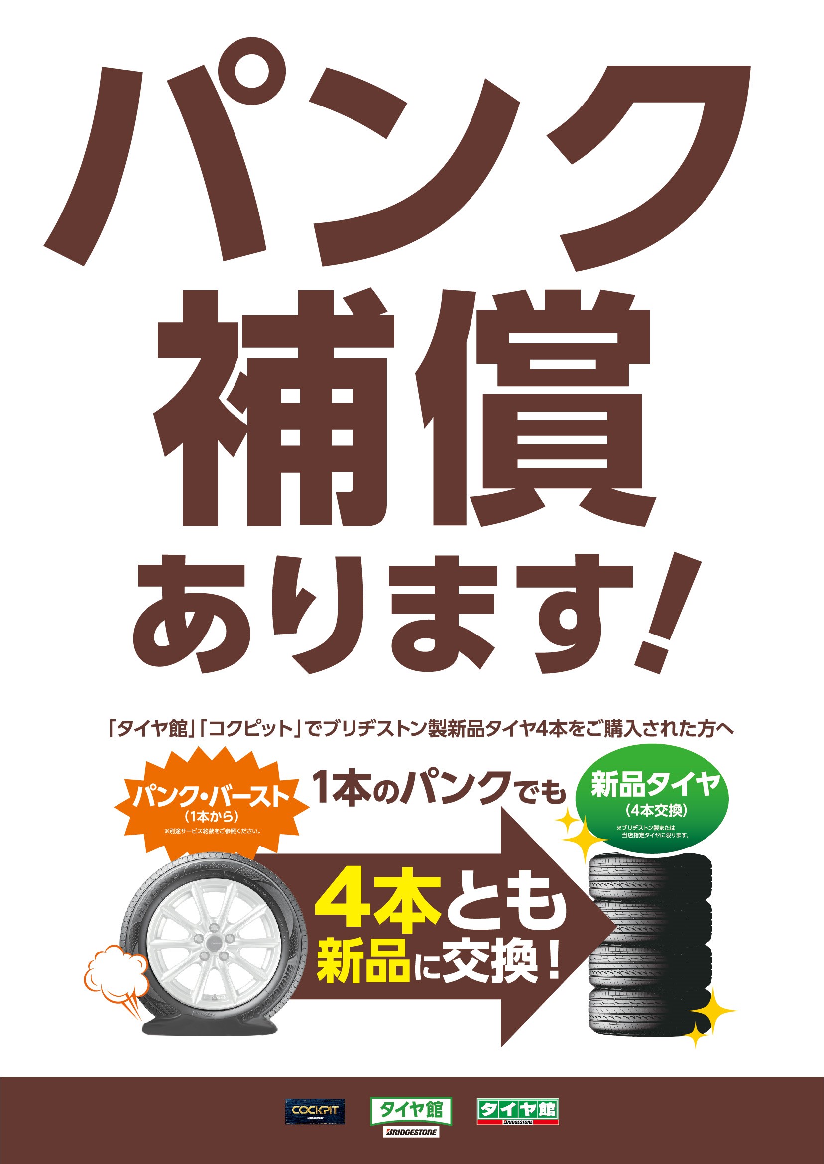 タイヤ館では「パンク補償」の取り扱いを始めました。