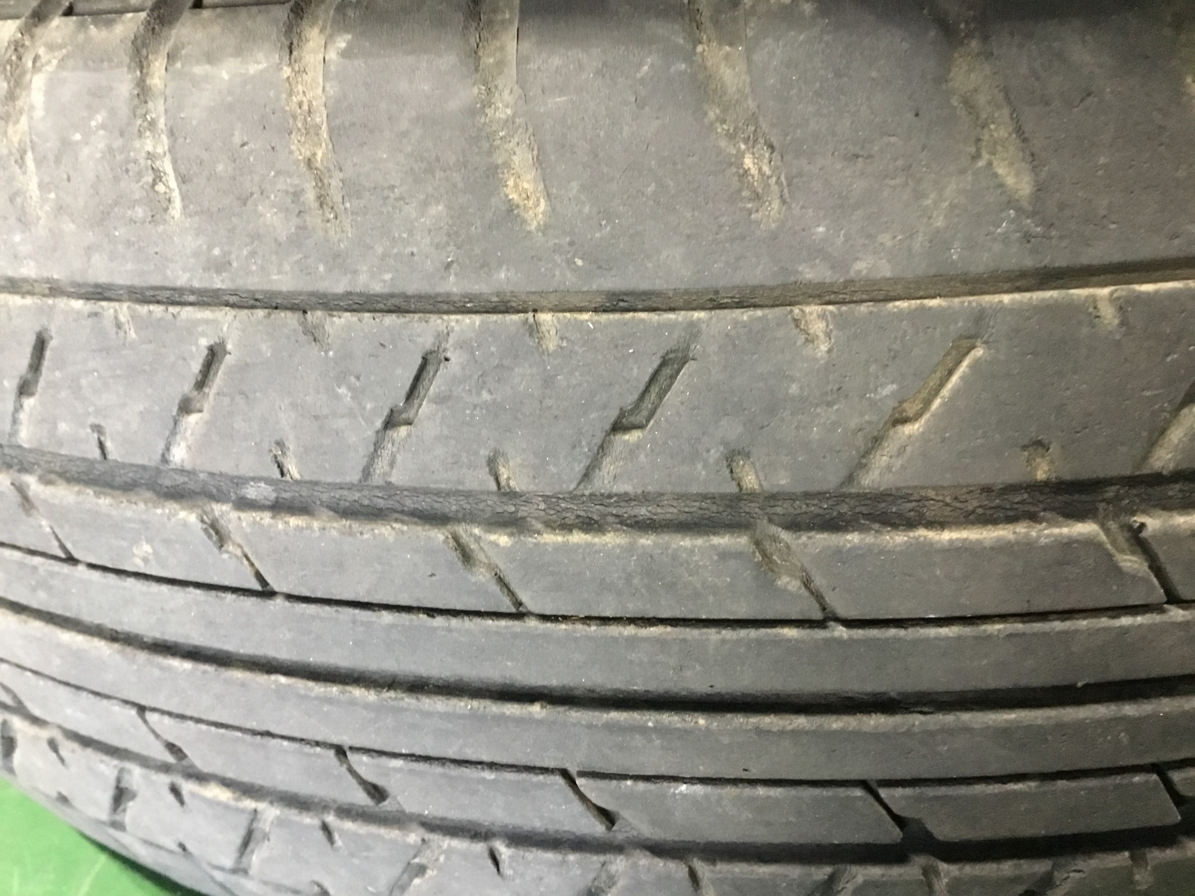 交換前のタイヤの残り溝は1.6mm以下でした。