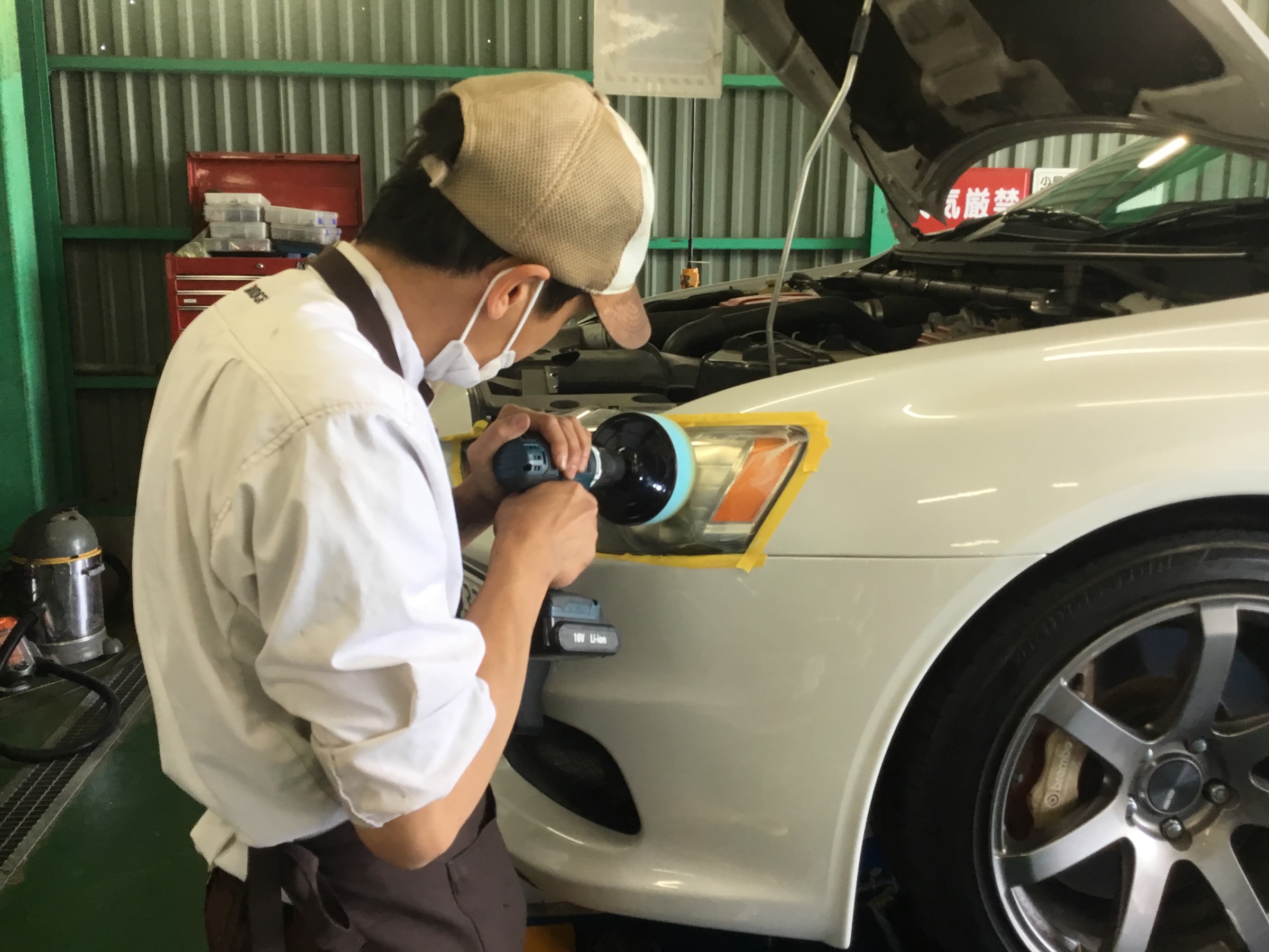 三菱 ランサー アライメント+ヘッドライトコーティング