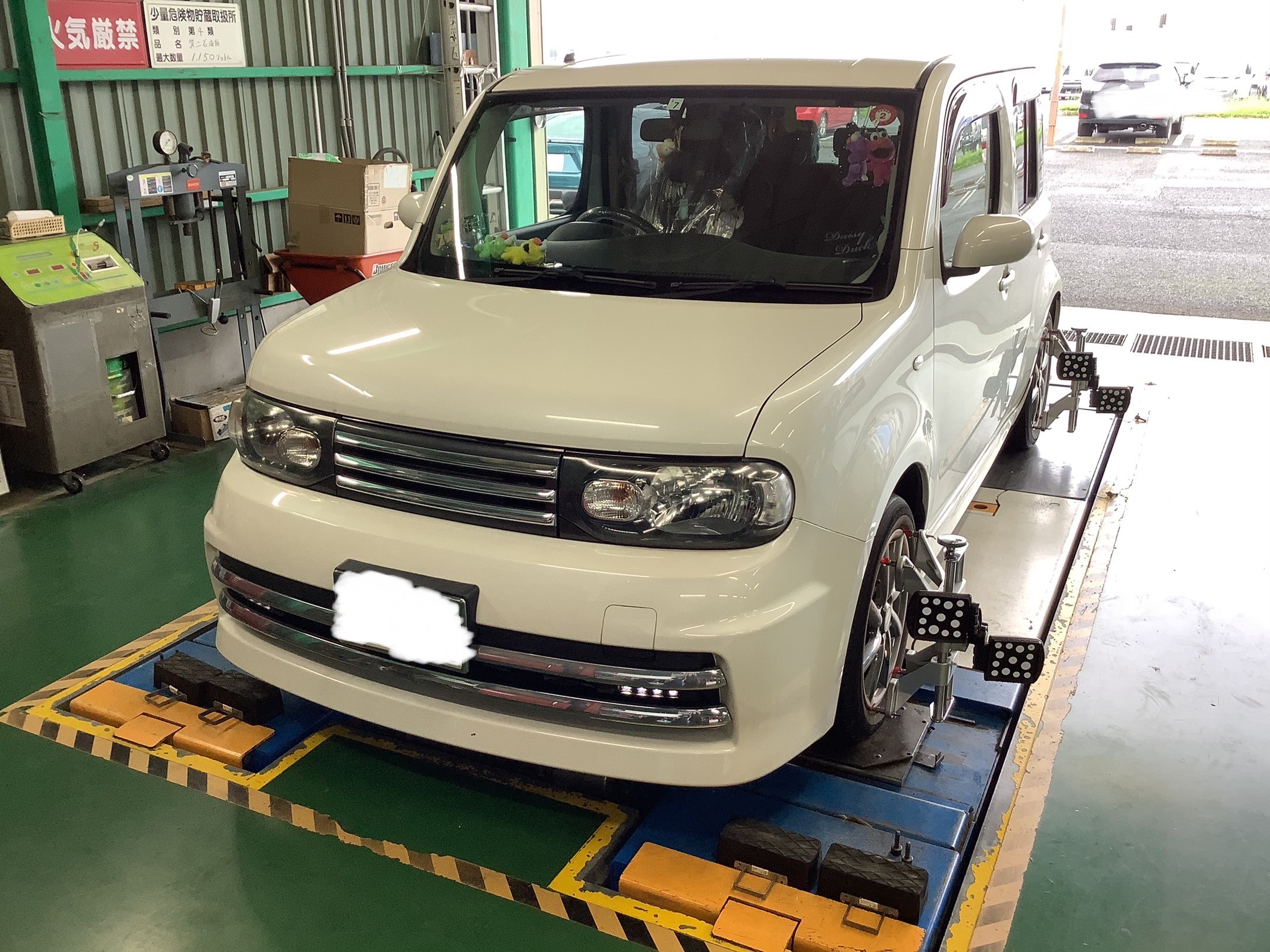 今回ご紹介するのは日産 キューブの夏タイヤ交換+アライメント+ヘッドライトコーティング!