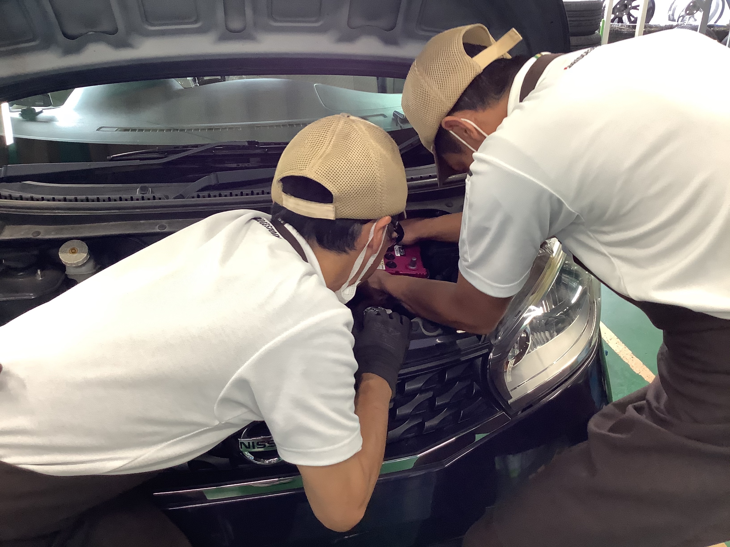 お車のエンジンスペースなどにより一人で作業が困難な場合もございます。