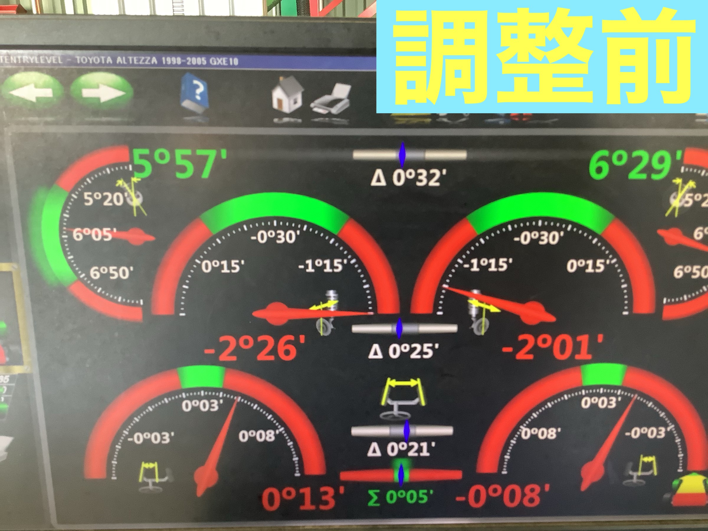 フロント 【トー】 【左キャンバー】の調整作業を行う運びとなりました(*^^)v
