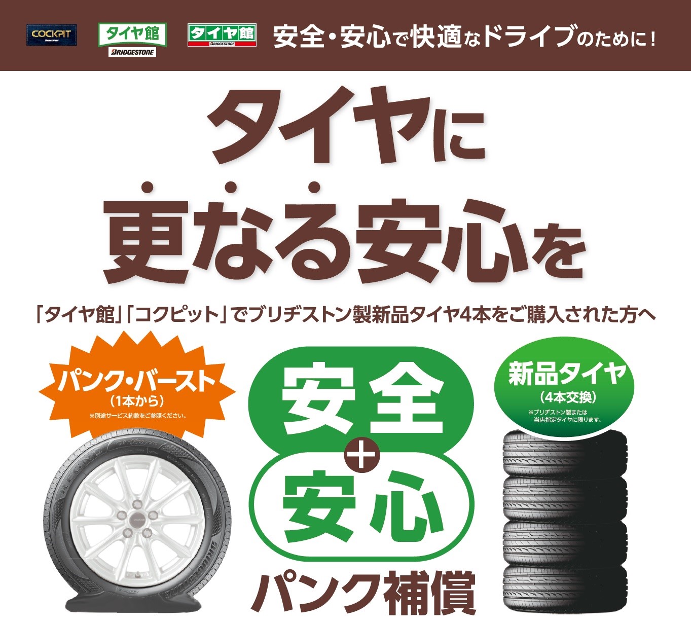 タイヤ館では「パンク補償」の取り扱いを始めました。
