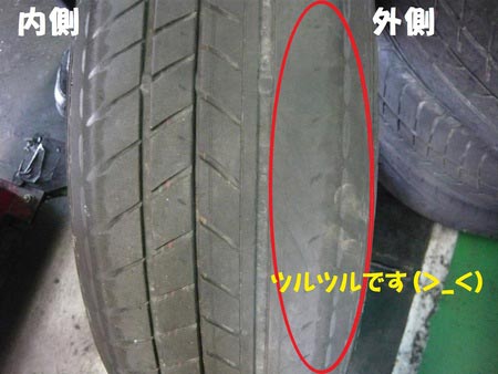 外側が内側にくらべやはりかなり磨耗していました。(画像1)