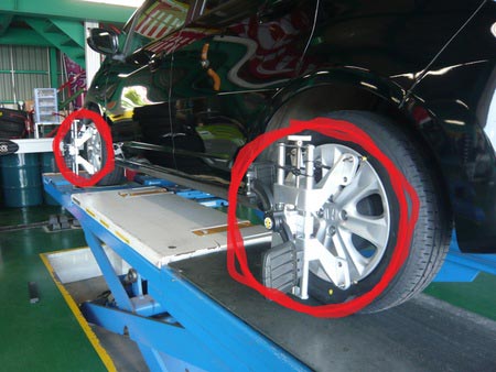 アライメントの作業の流れはまずホイールに機械を