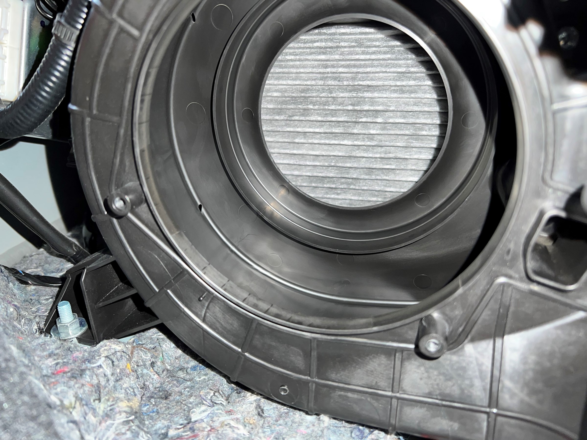 今回あたらしくさせて頂いたエアコンフィルターが見えますねっ!!