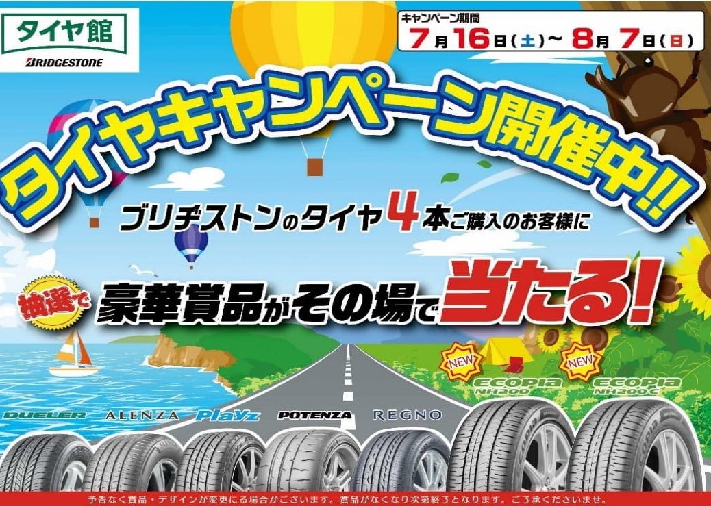 抽選で豪華賞品がその場で当たる!!タイヤキャンペーン開催