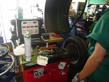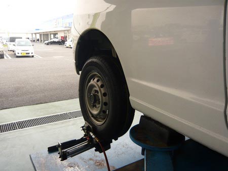 このように、車両取付けの際に、専門の機械を使って振動を与えます。