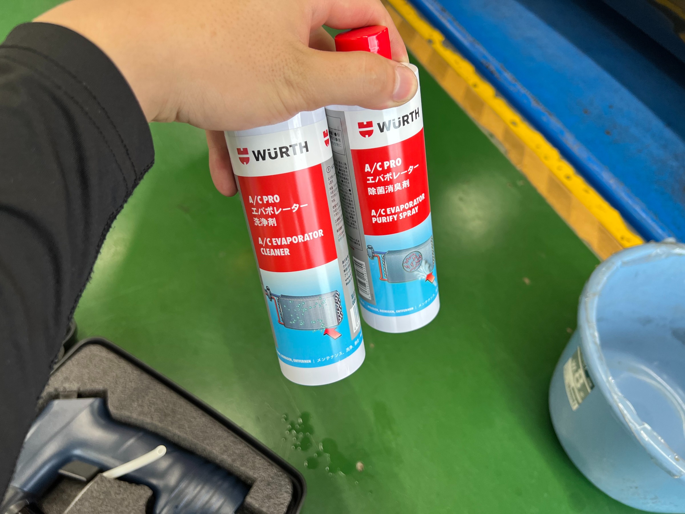 あとは洗浄剤⇒除菌洗浄剤の順でエバポレーター全面に行きわたる様に散布していきます('◇')ゞ