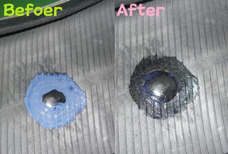 このパンク補強修理剤は乾くとゴムと同化するので、