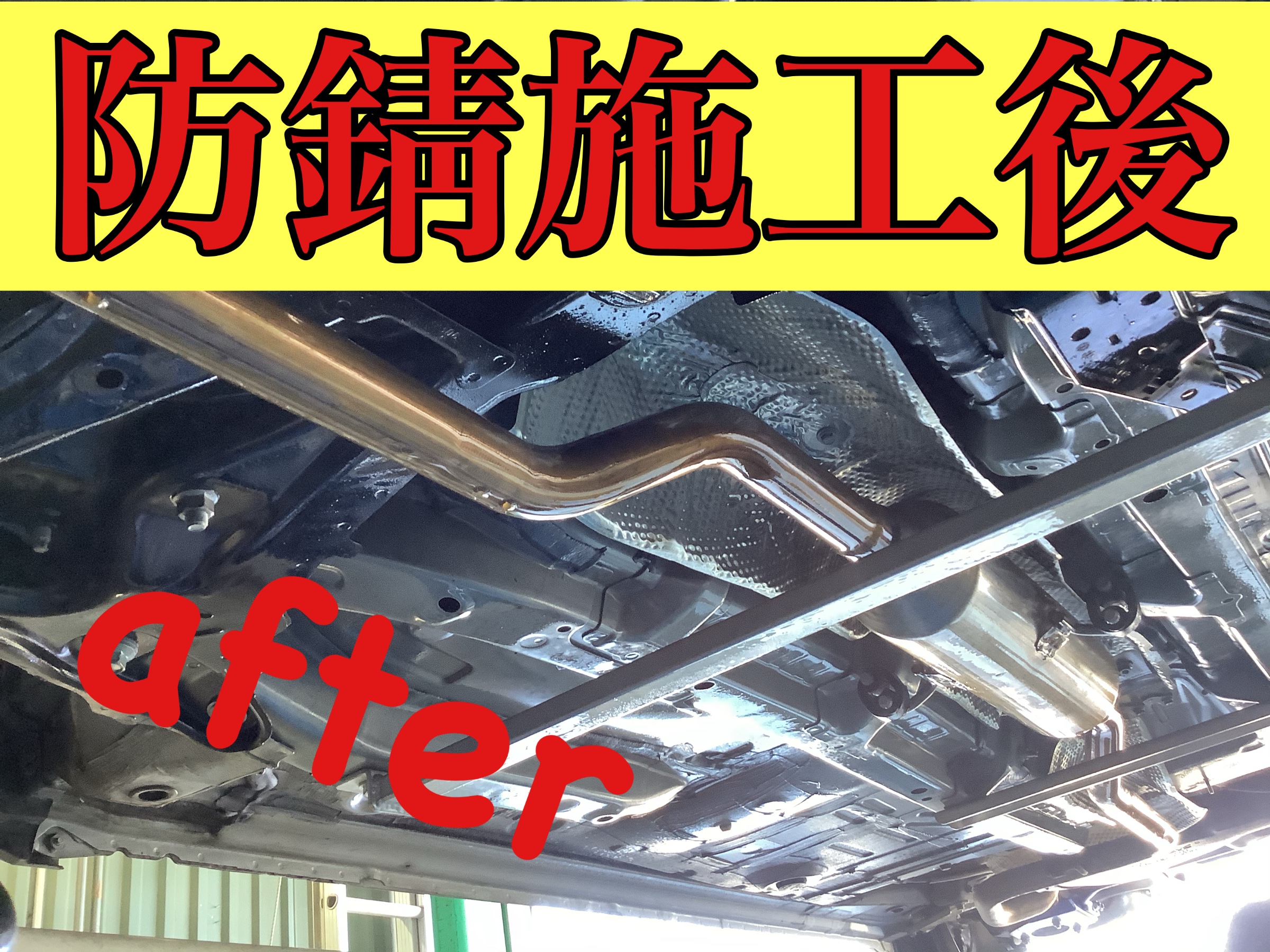 防錆施工後なのでまた乾かす前ですが、お車により施工時間も変わります。