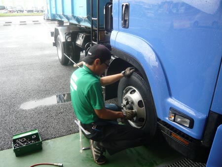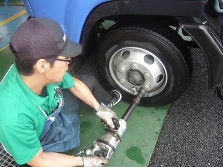 トラックとなると乗用車とは違い工具もタイヤも大きいですね!