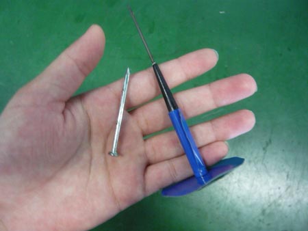 タイヤを外してみたところ、接地面に釘が刺さった状態でした><