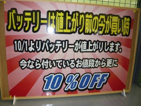 さらに原材料の高騰でバッテリー価格が全部ではないのですが10月1日よりあがります!!