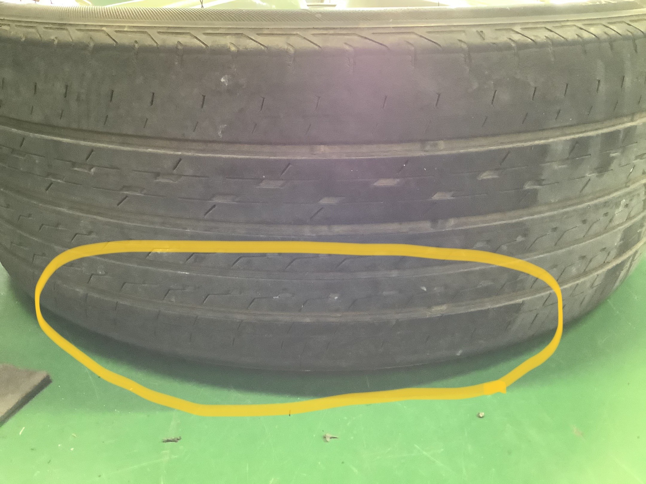 タイヤ減り方が偏って減っていました。いろいろ要因はありますが、その一つが車へのタイヤの取付角度の不適正・アライメントの角度がずれてしまっている可能性があります。タイヤ本来の性能を出す為・タイヤを長持ちさせるためにもアライメント調整をお勧めします。