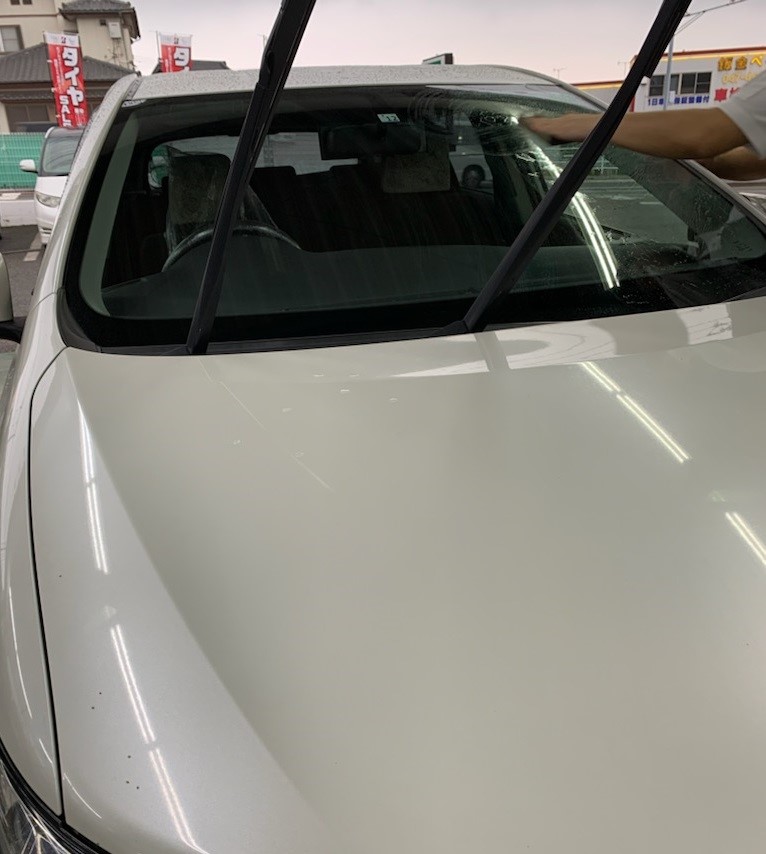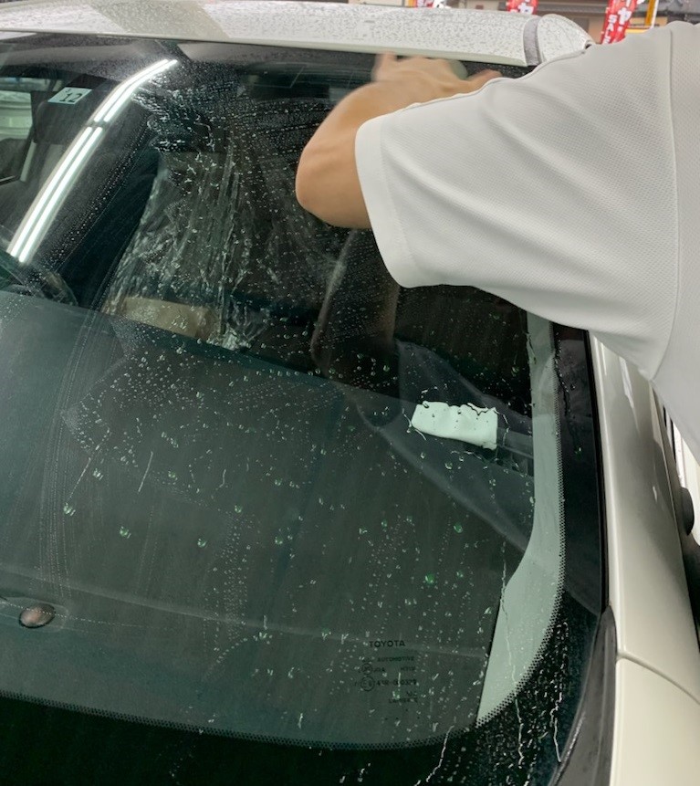 フロントガラスをキレイにして、ガラス撥水コーティング剤を