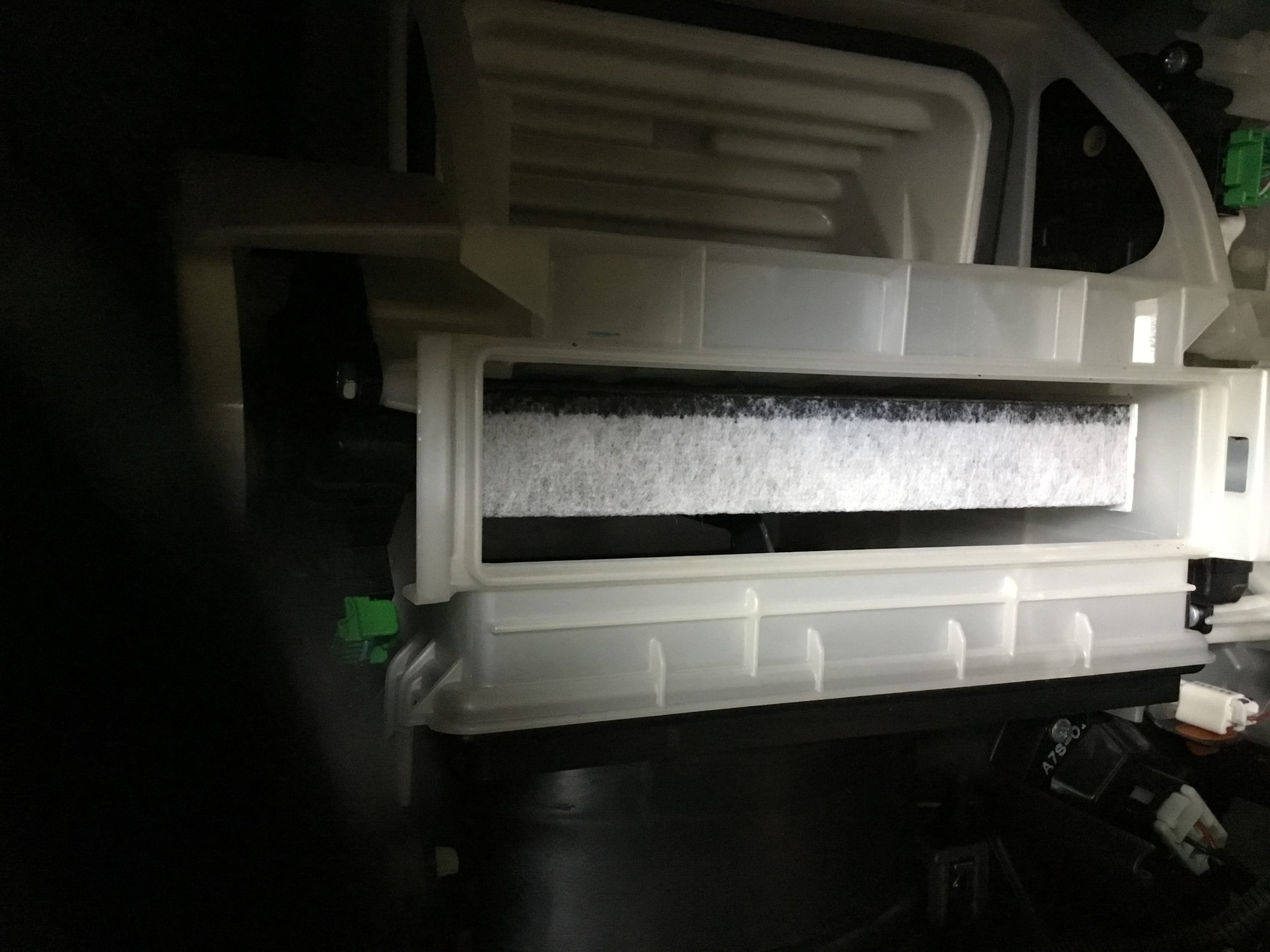 エアコンフィルターの場所はダッシュボードの裏に
