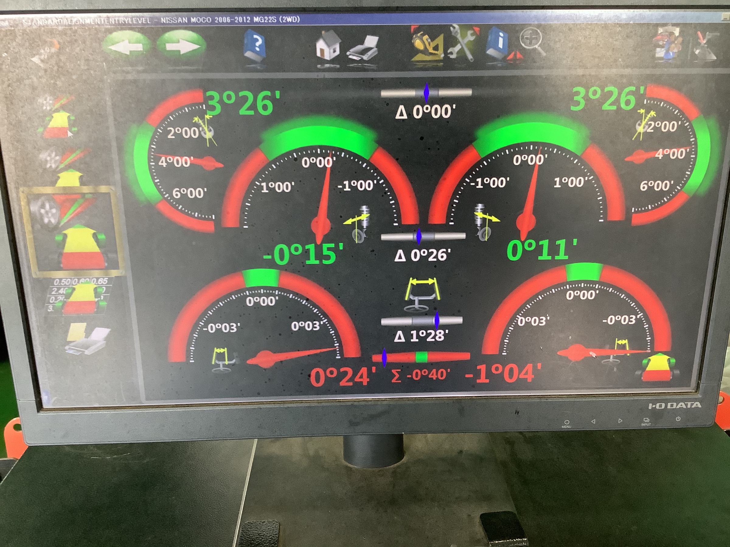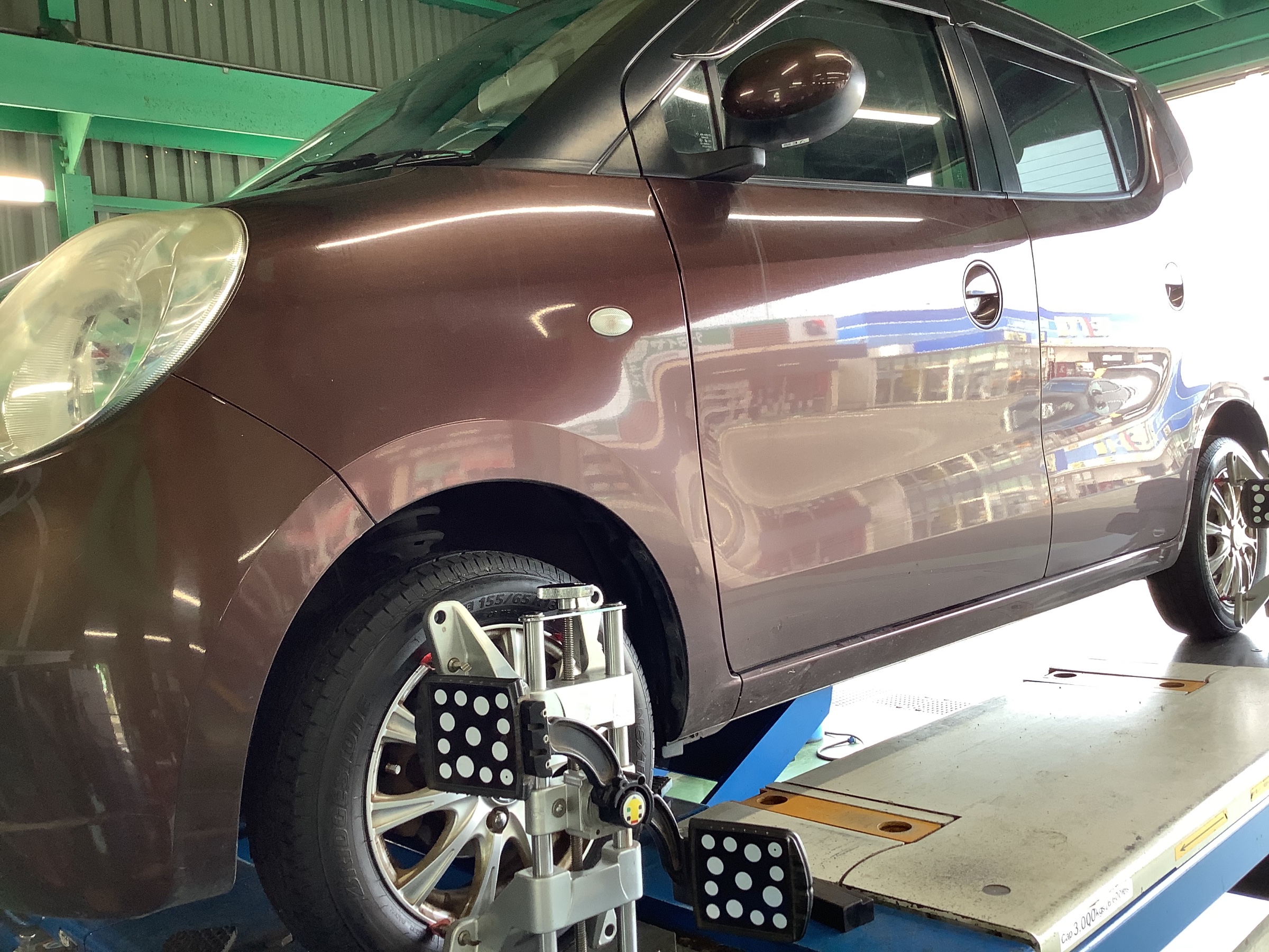 本日はニッサンモコのアライメント作業です。