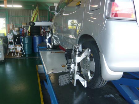 アライメントの機械にお車をセット!!(1枚目・2枚目)