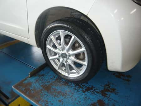 で隠れていたスチールホイールが曲がっており、アルミホイールに交換となりました。