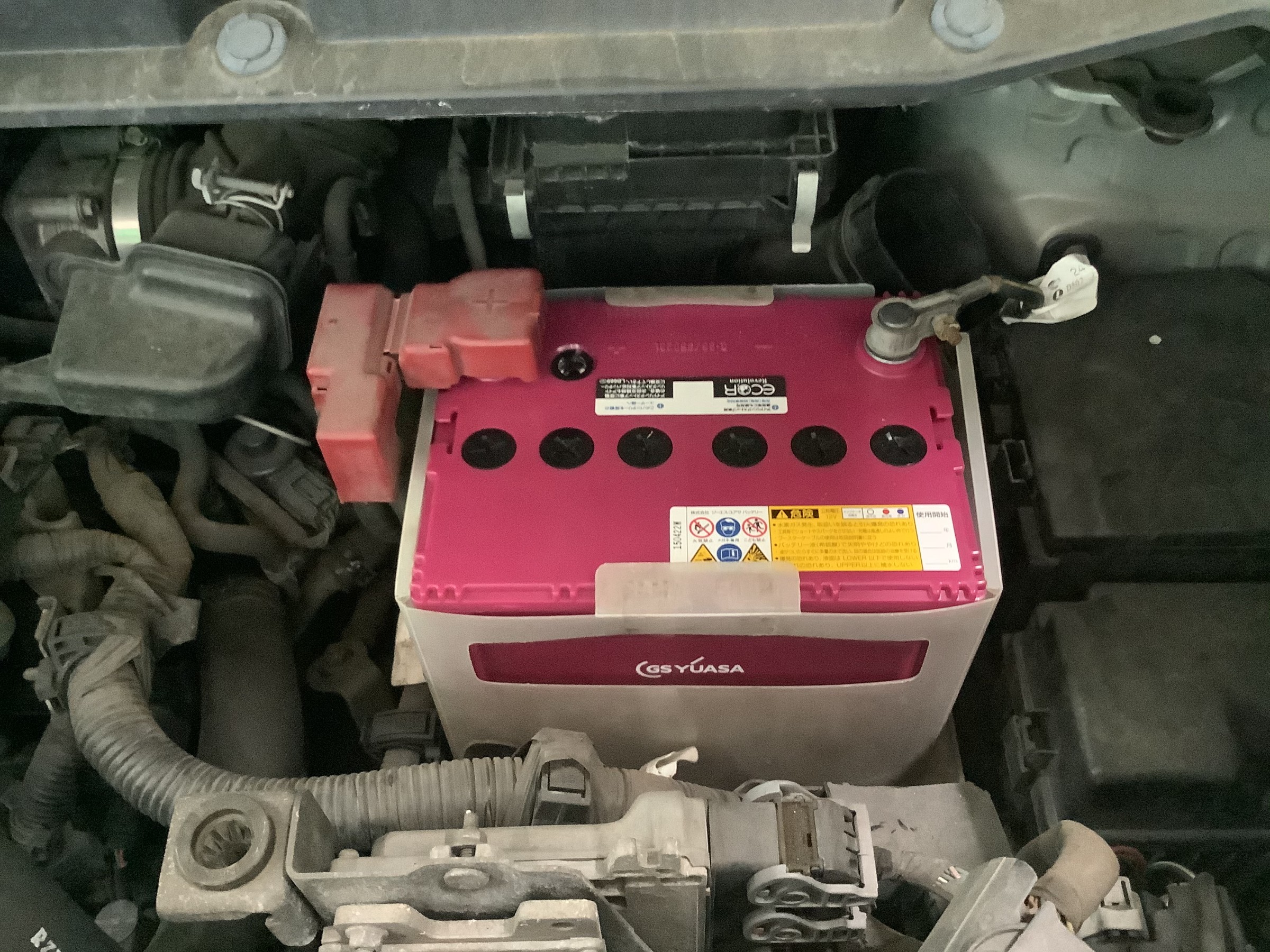 お車にもよりますが、直ぐにバッテリーにアクセスできません....