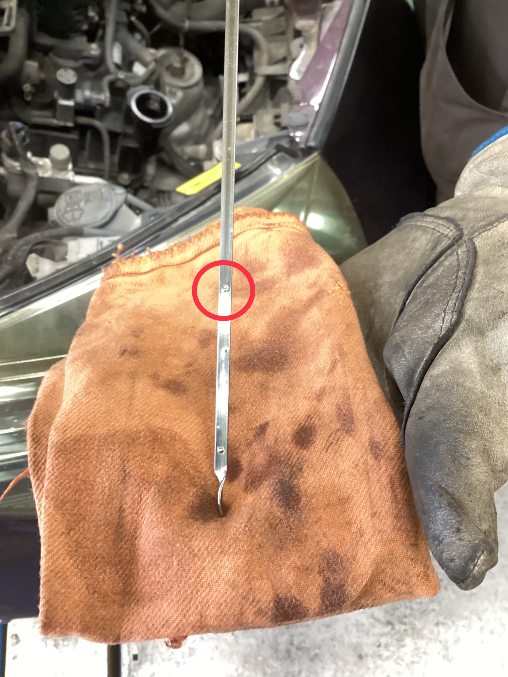 確認方法は写真の赤丸の部分までオイルが来ていればOKです。