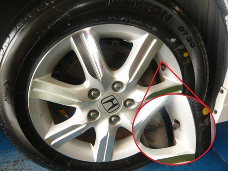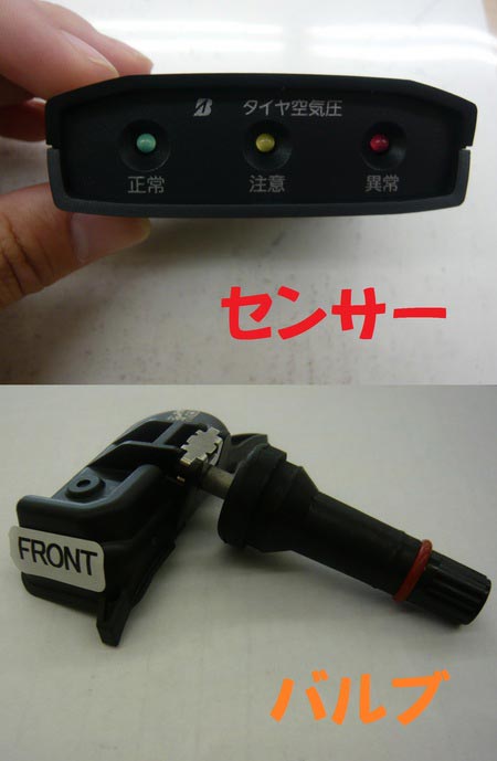 TPMSとはタイヤのバルブを送信機のついたバルブ(画像2下)に変更し、