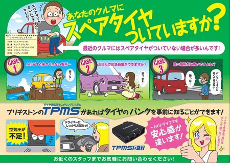 最近のお車はスペアタイヤを積んでいないお車が多く見られます。