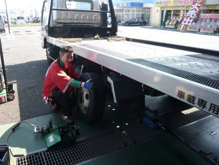 本日は車を運ぶトラックのタイヤ交換です!!