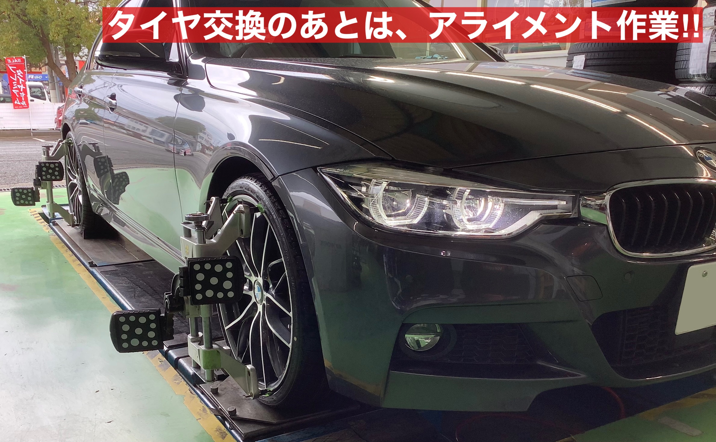 【BMW/320d】ランフラットタイヤ交換作業&アライメント作業!!d(・∀・○)