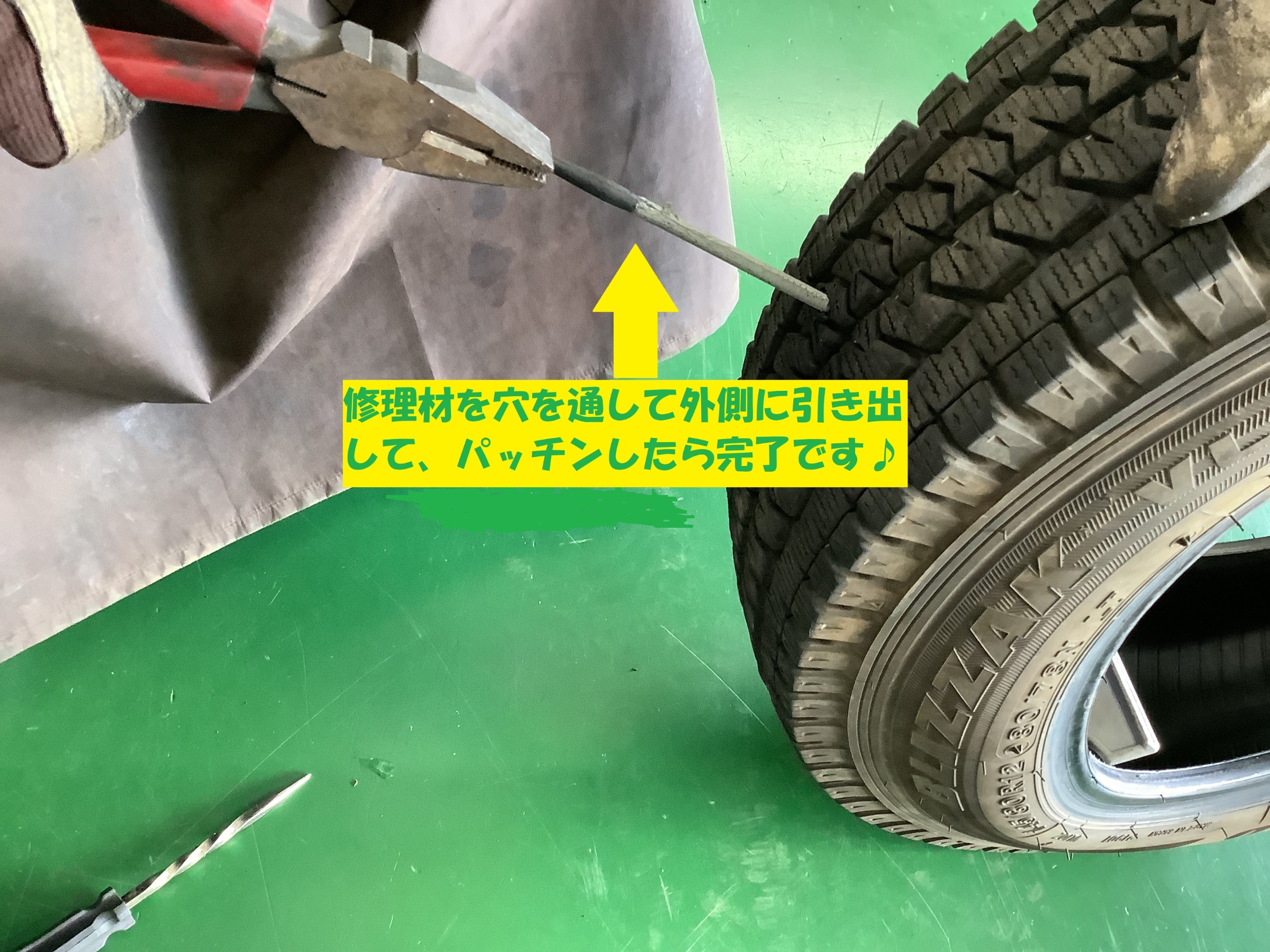 軽トラックタイヤのパンク内面修理 ヾ(*´∀`*)