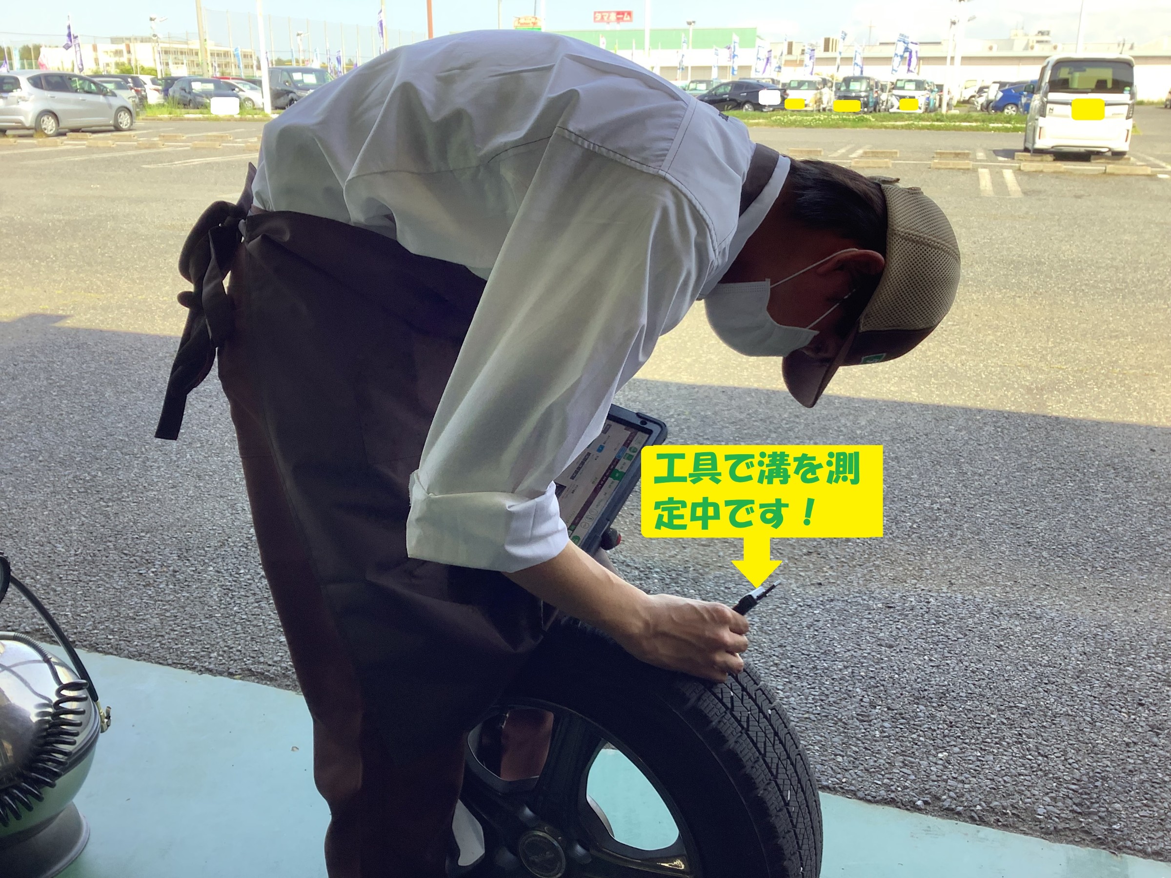 お預かりするタイヤの写真を撮っています (`・ω・´。)q