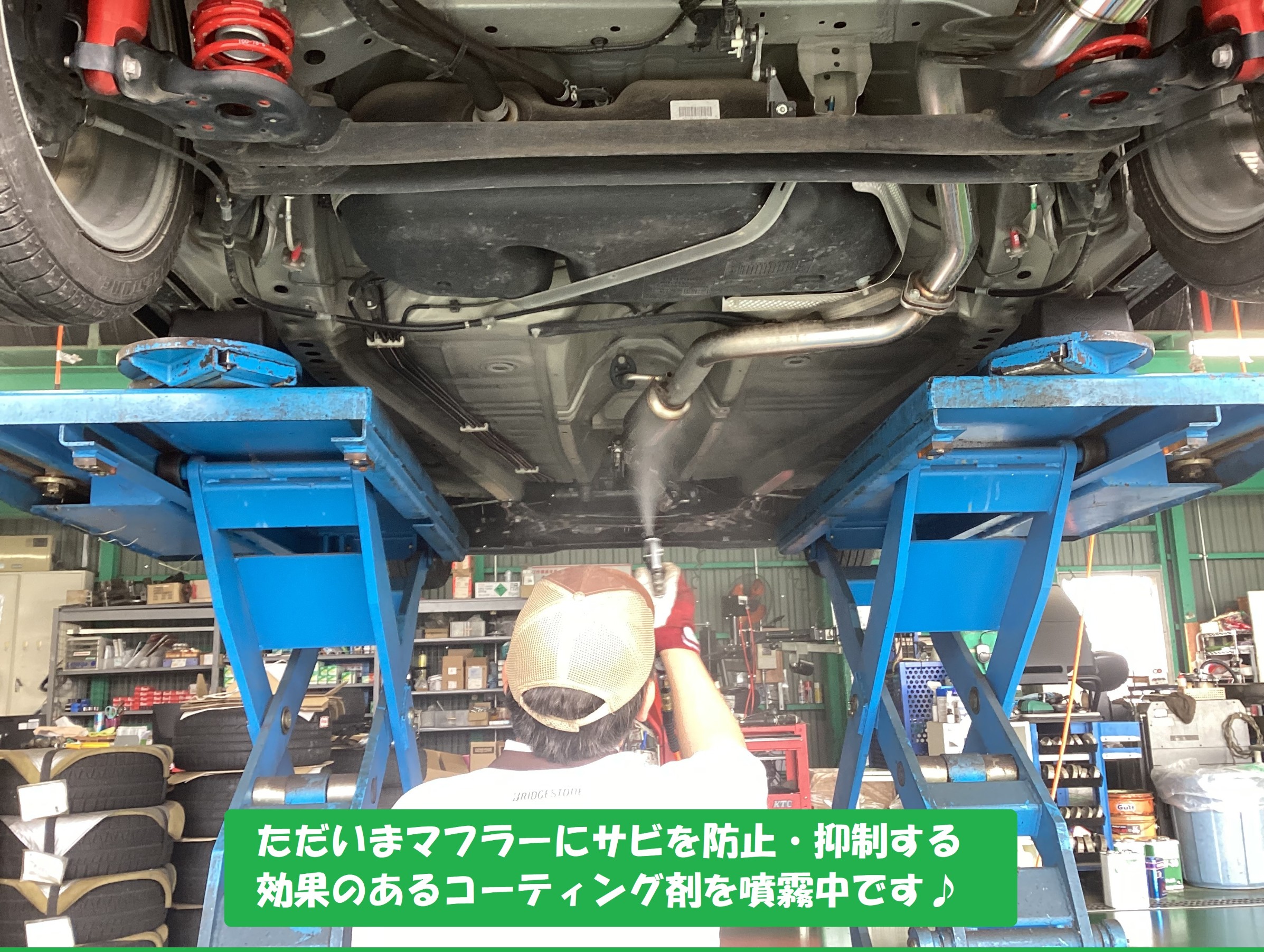 マフラーの後は下廻り全体のコーティングです p(*≧ω≦)/