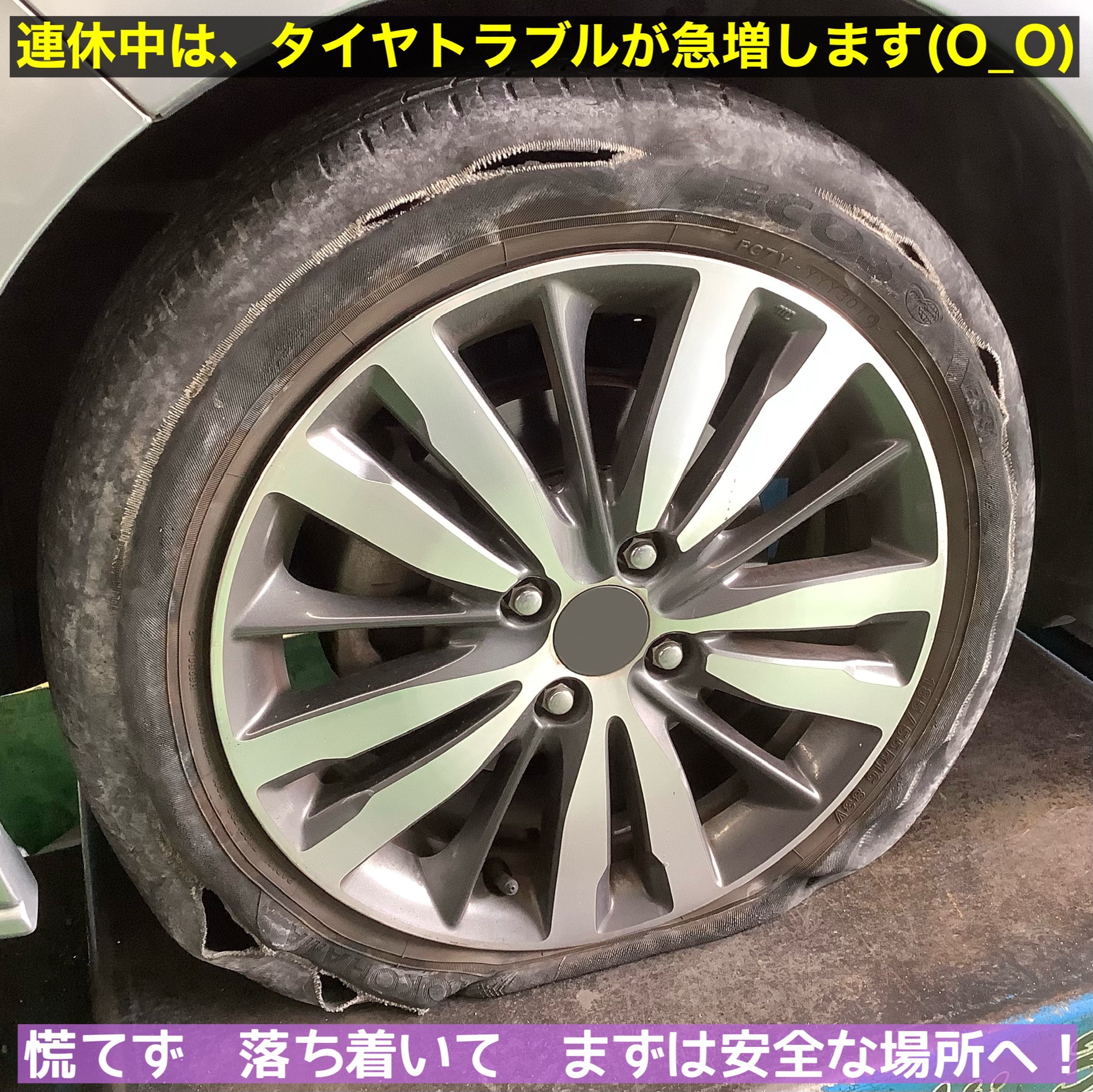 連休中は、おクルマでお出かけの方も多く、パンクトラブルが急増いたします。゚(*´□`)゚。