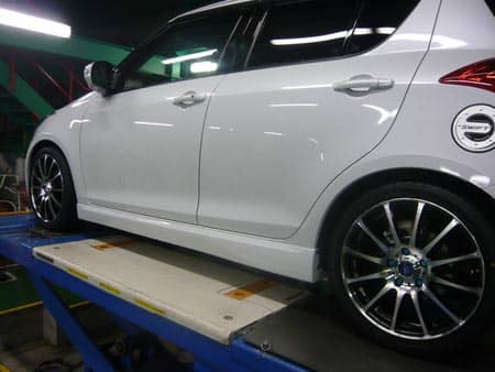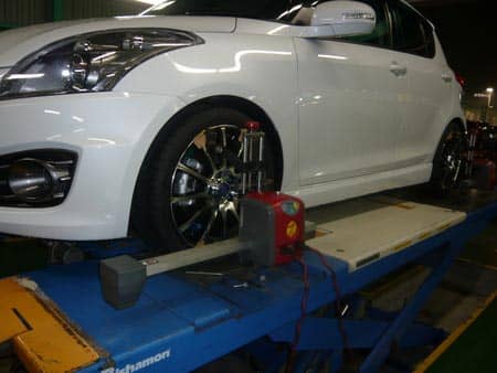 本日はスイフトスポーツ(本日納車)にアルミホイールセット取り付けとアライメント調整