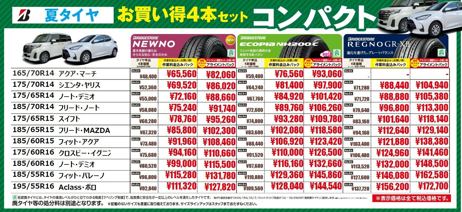 セール、タイヤ館アプリ会員値引きなどの