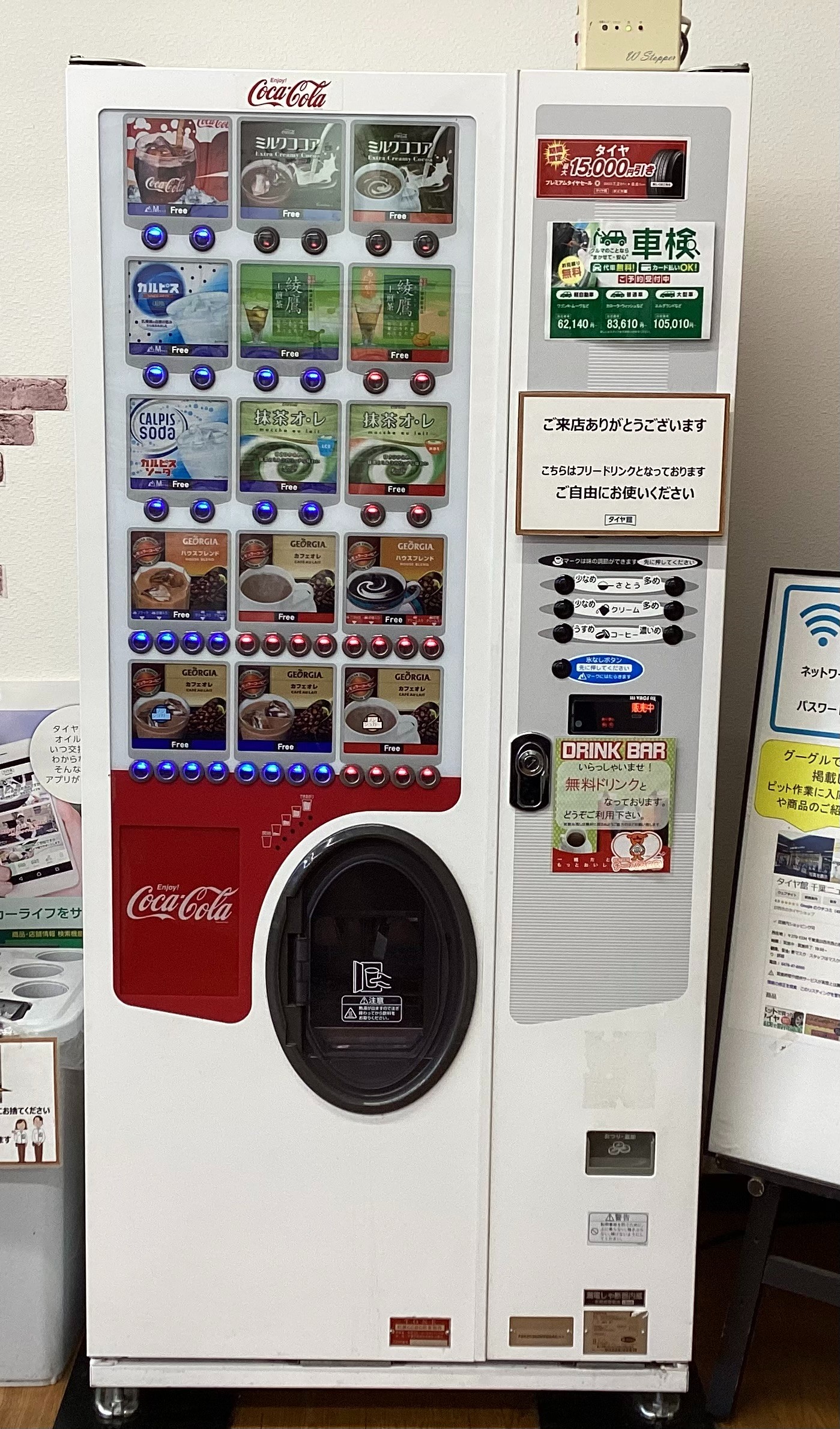 無料ドリンクコーナーあります!! ポスト 2024年12月10日 作業をお待ちの間、無料ドリンクコーナーご利用いただけます♪作業終了までごゆっくりお過ごし下さい♪(^^♪ タイヤ館 千葉ニュータウン 住所:270-1334千葉県印西市西の原5丁目4番 電話番号: 0476-47-6000 タイヤ点検・安全点検/タイヤ履き替え/オイル交換/その他ピット作業の予約