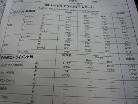 (今回は左フロントのトーのみが基準より若干外れてました)