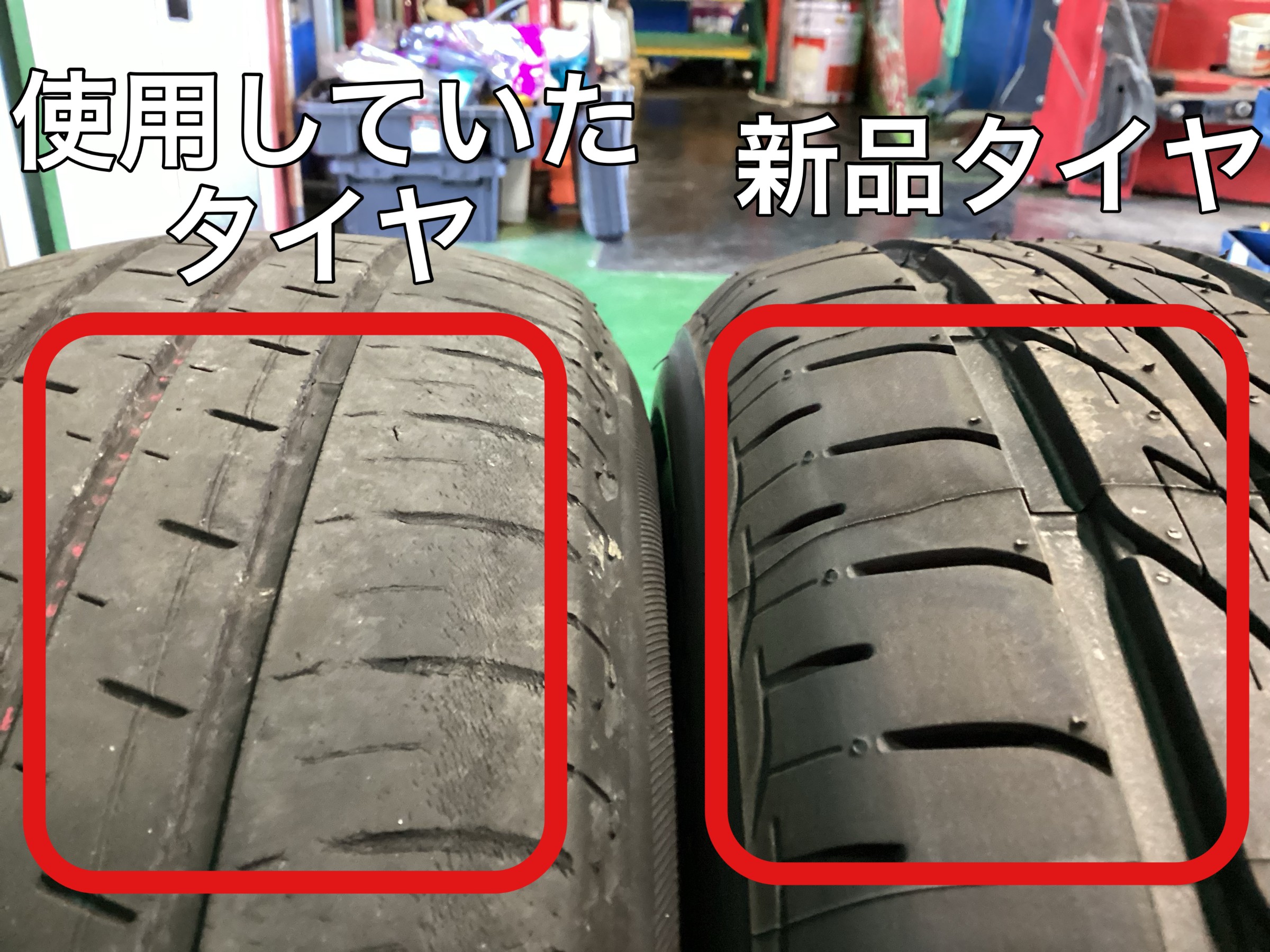 新品タイヤと比較して見ると、残溝の差は一目瞭然です!