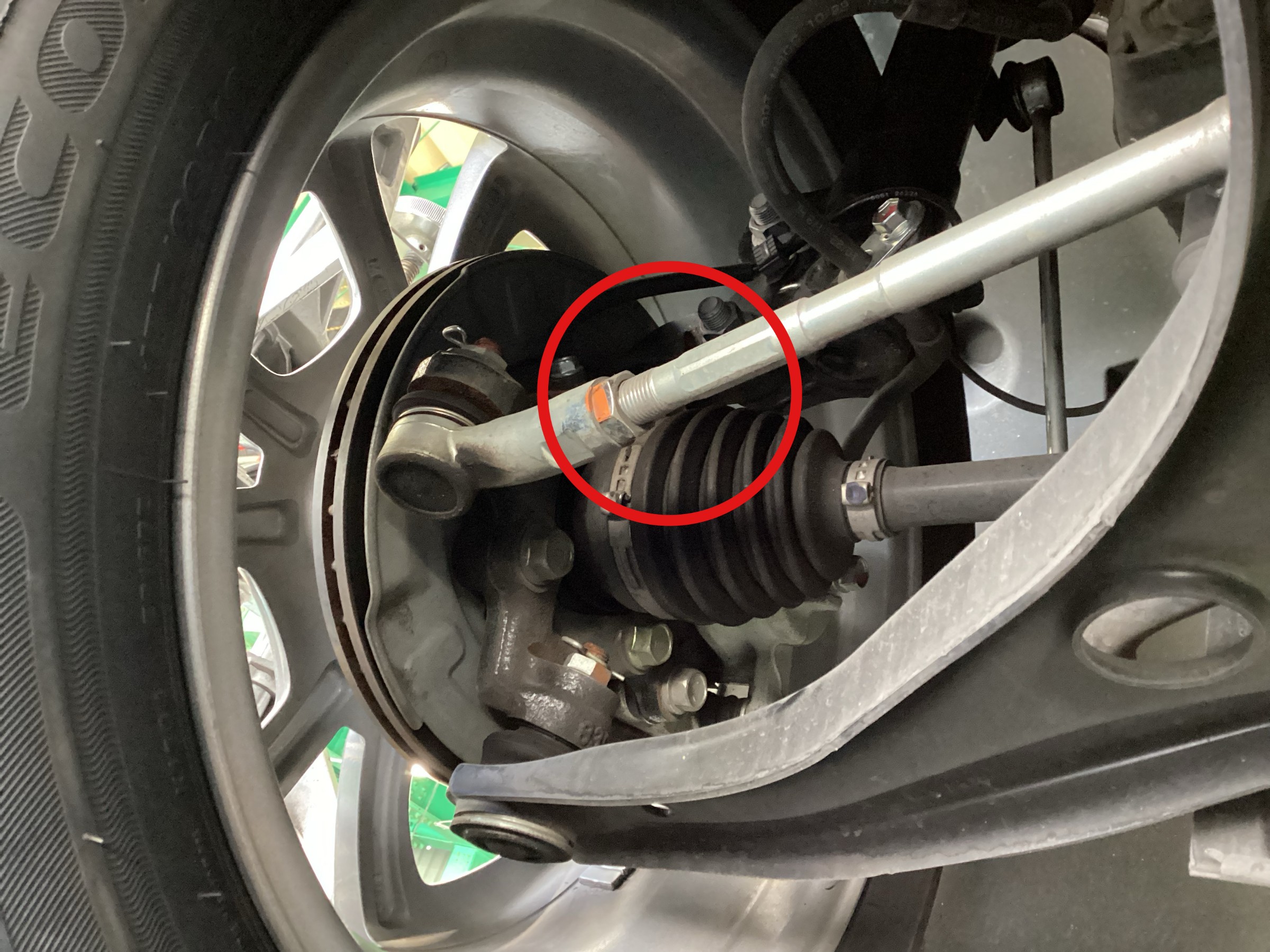トー角は画像の赤丸部分のナットを緩めて調整していきます!!