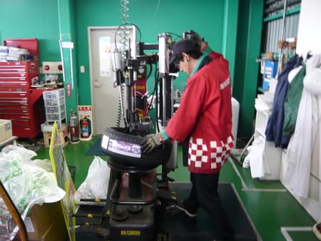薄いタイヤを組み替えるのは、通常より高い技術が求められます!