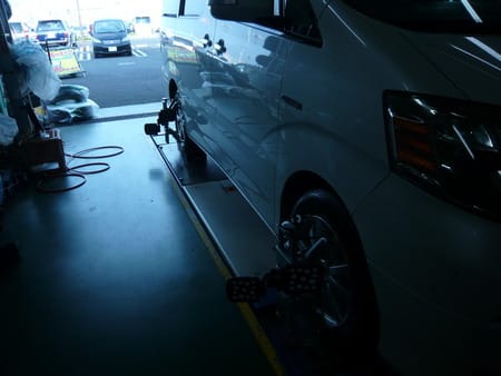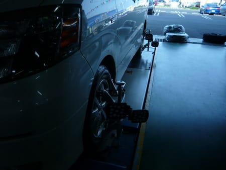 夏タイヤが減っていたことから、新品交換取付けにてアライメント作業いたしました。