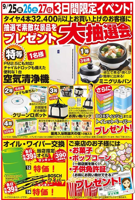 イベント内容としてまず、期間中タイヤ4本(¥32,400以上)