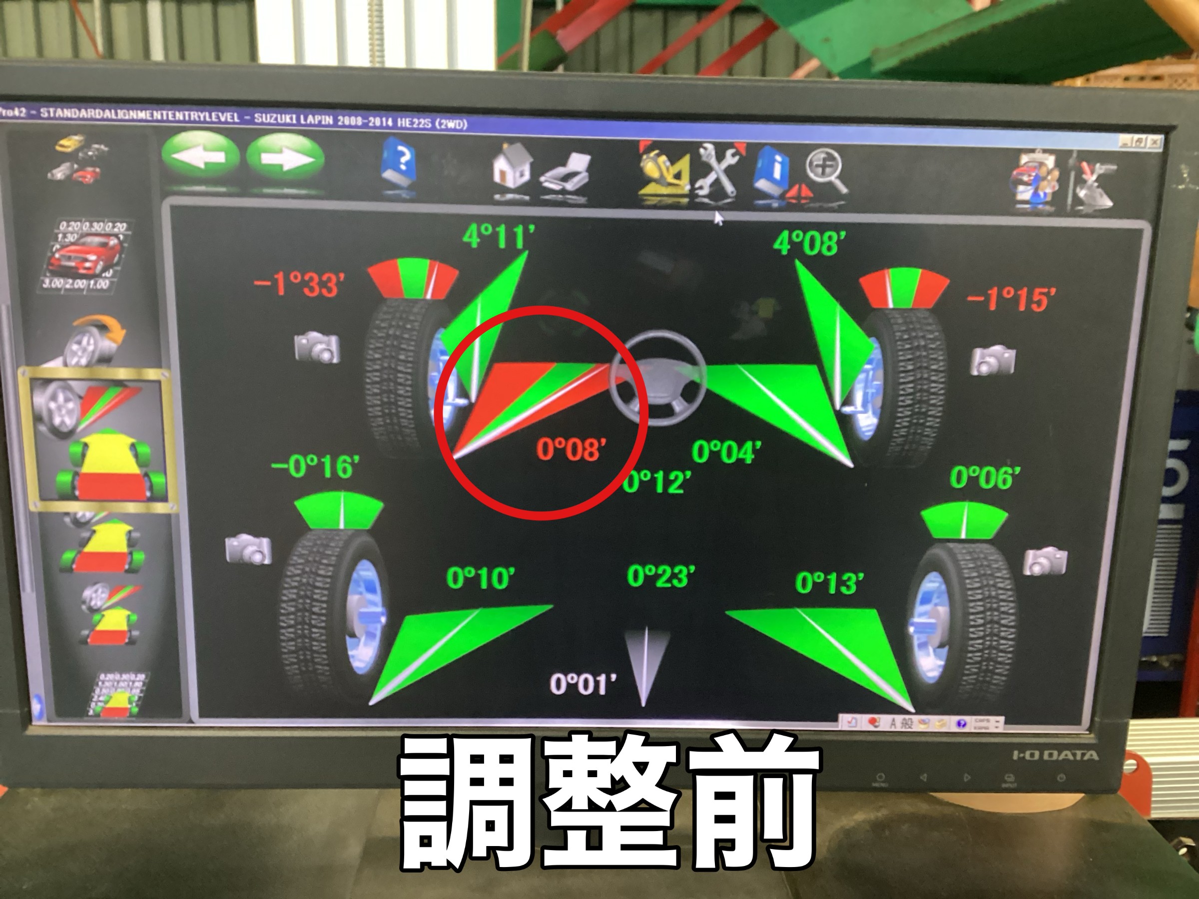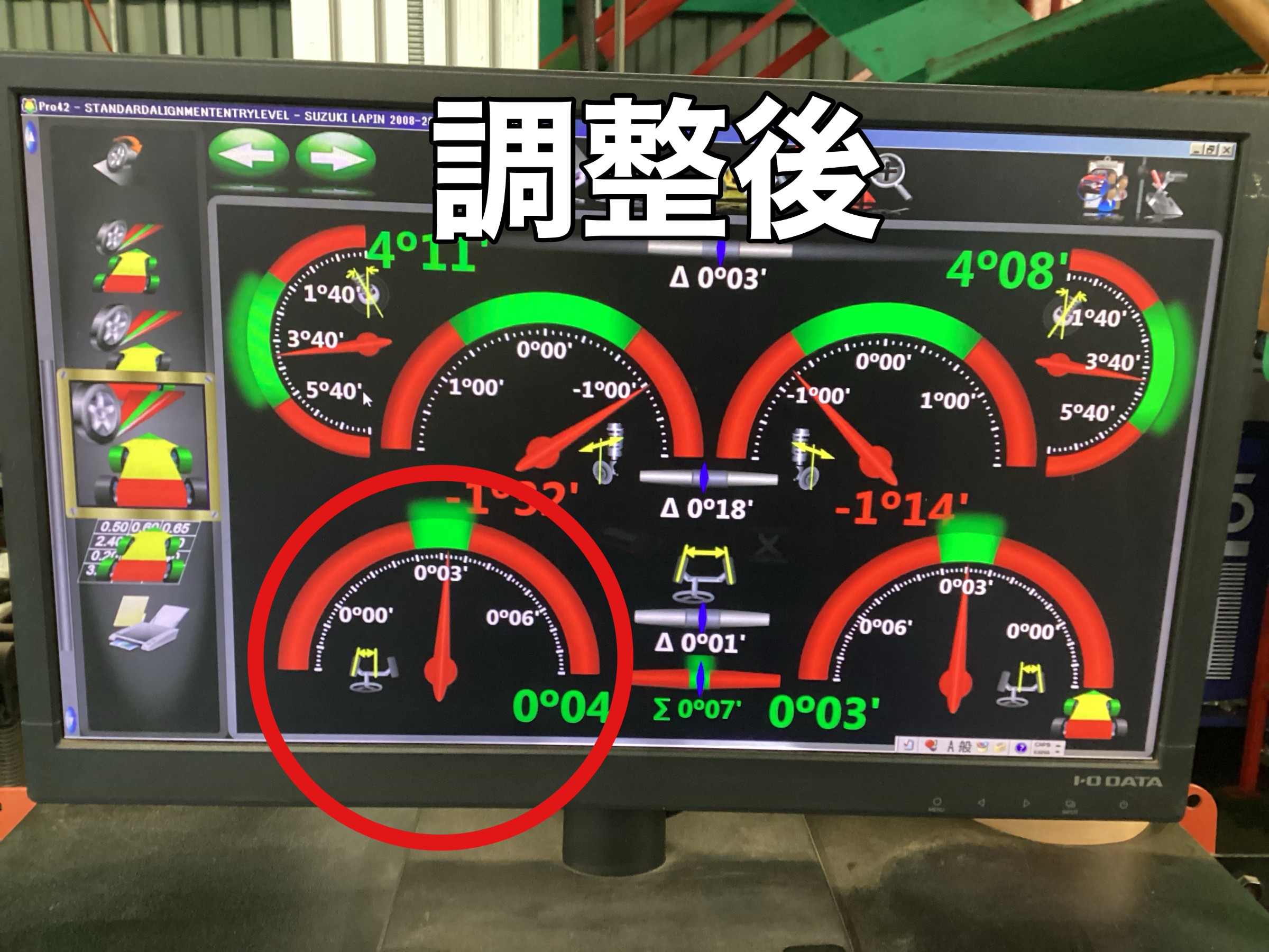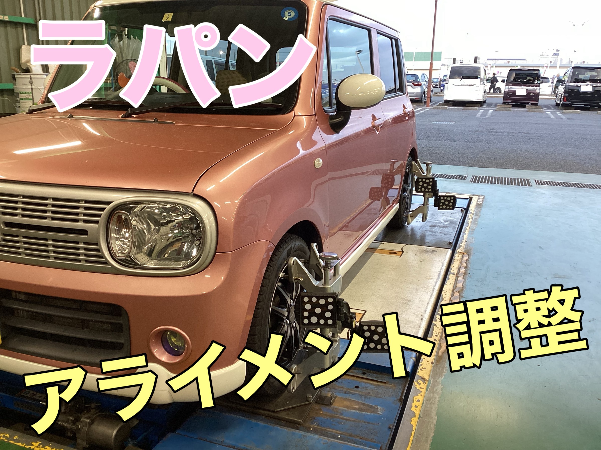 本日は、スタッフ山田の愛車ラパンのアライメント調整を行いました!!