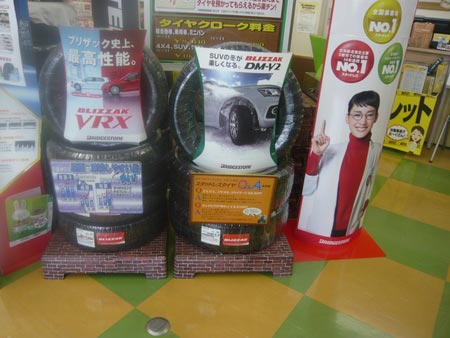 ということで、当店でも店頭にスタッドレスタイヤが大量に展示されました!!