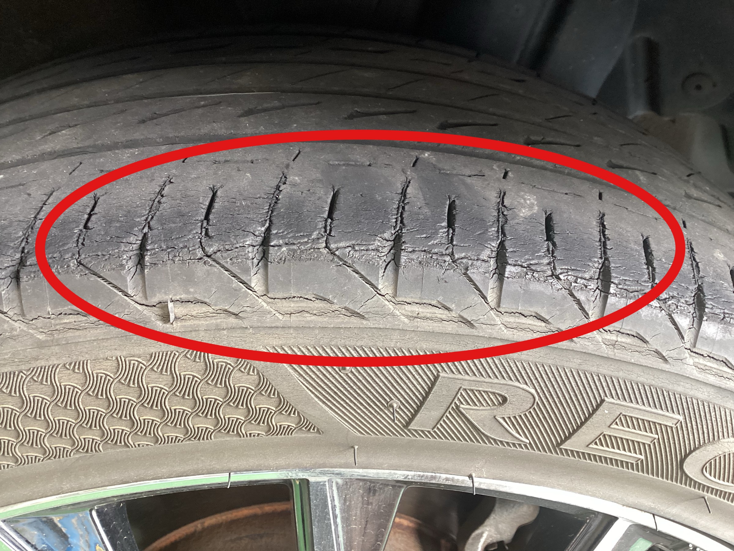 履いているタイヤの溝も少なくなり、ひび割れも目立ってきましたので交換になります!!