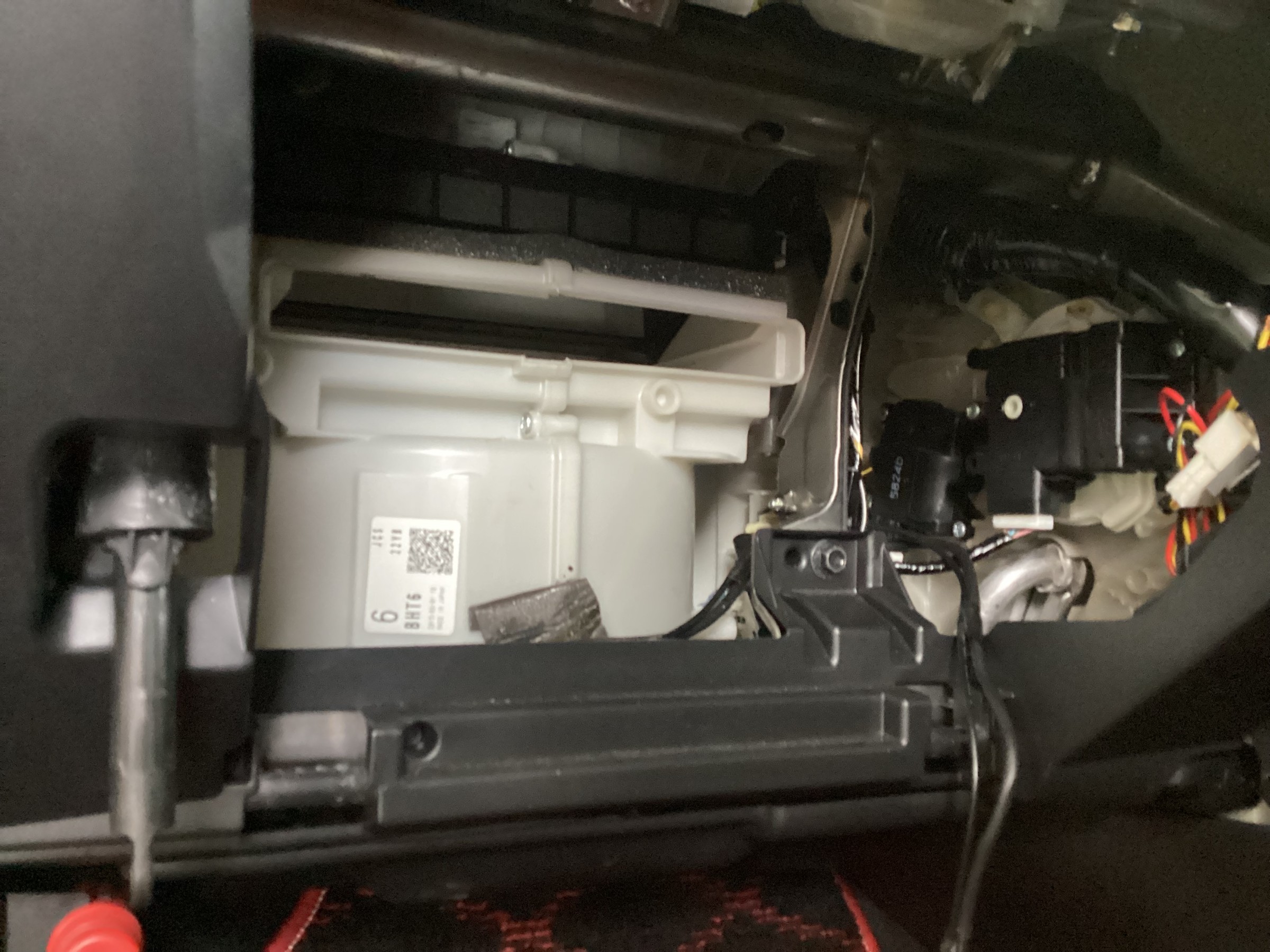 まずは、助手席前のグローブボックスを外し、ブロアファンを取り外します!!