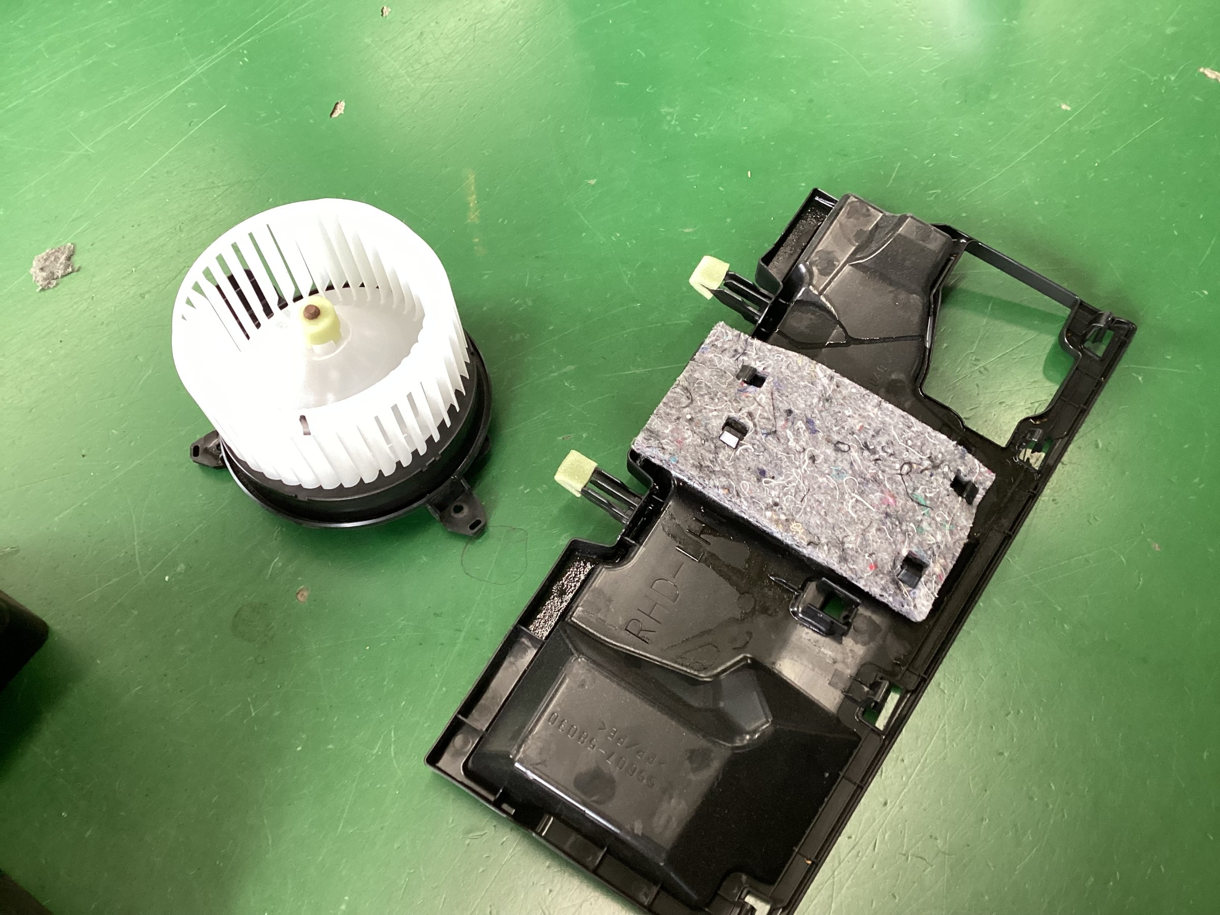 さっそく助手席下のパネルを外しブロアファンを取り外します!
