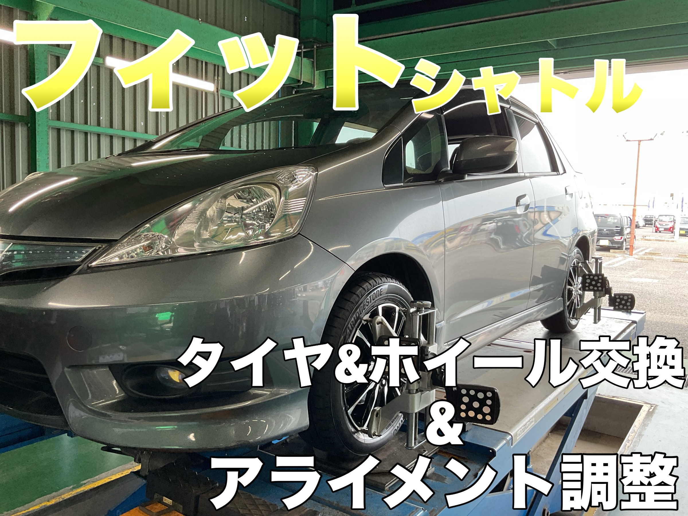 フィットシャトル タイヤホイール交換&アライメント調整!