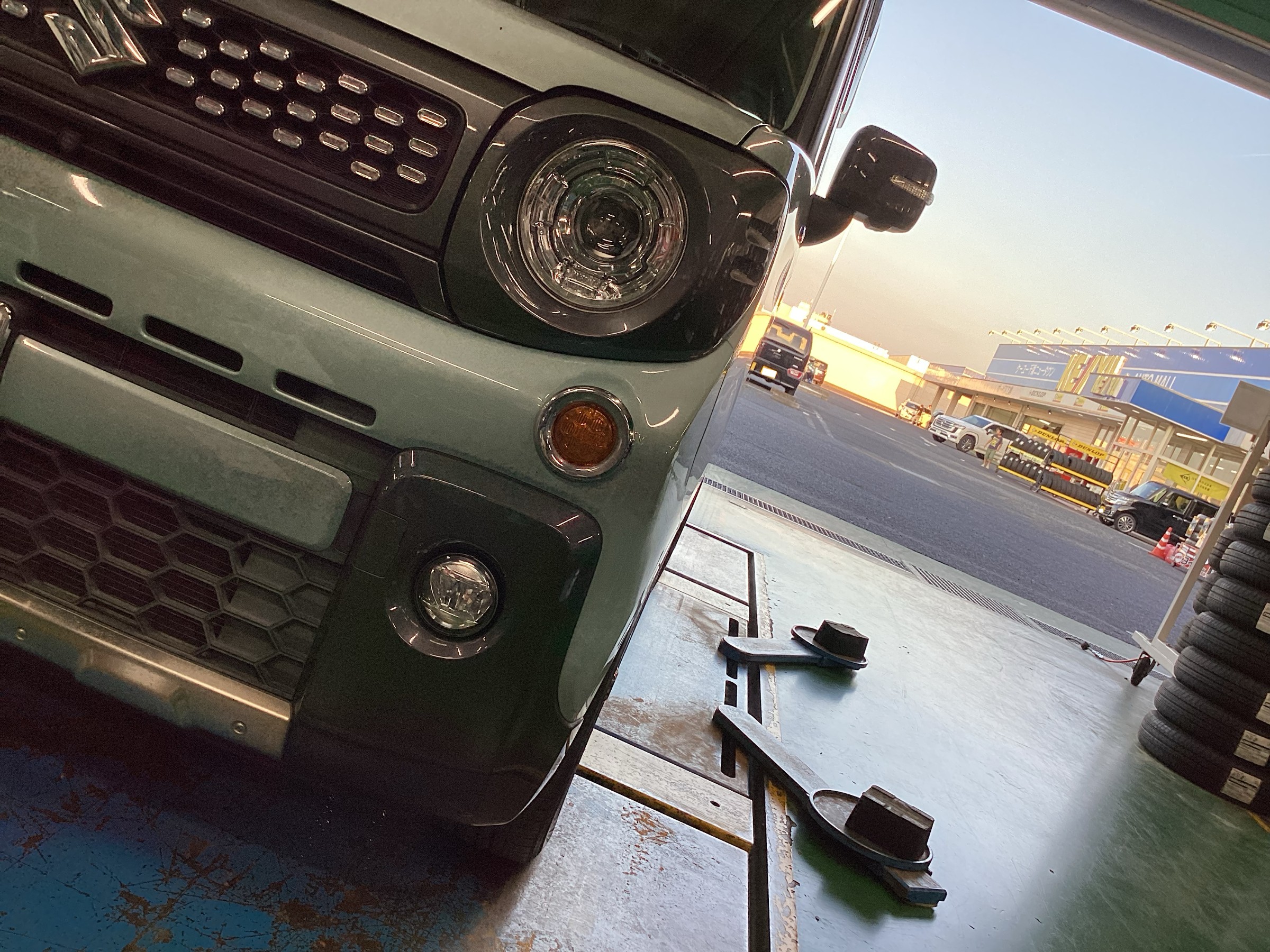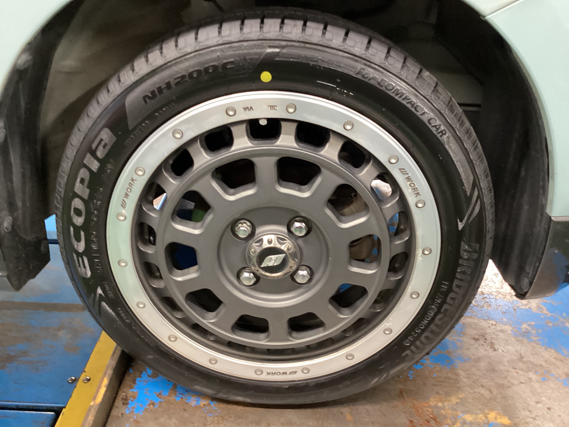 今回はWORKのホイールでバッチリきまっている、スペーシアギアのタイヤ交換をやらせていただきました!